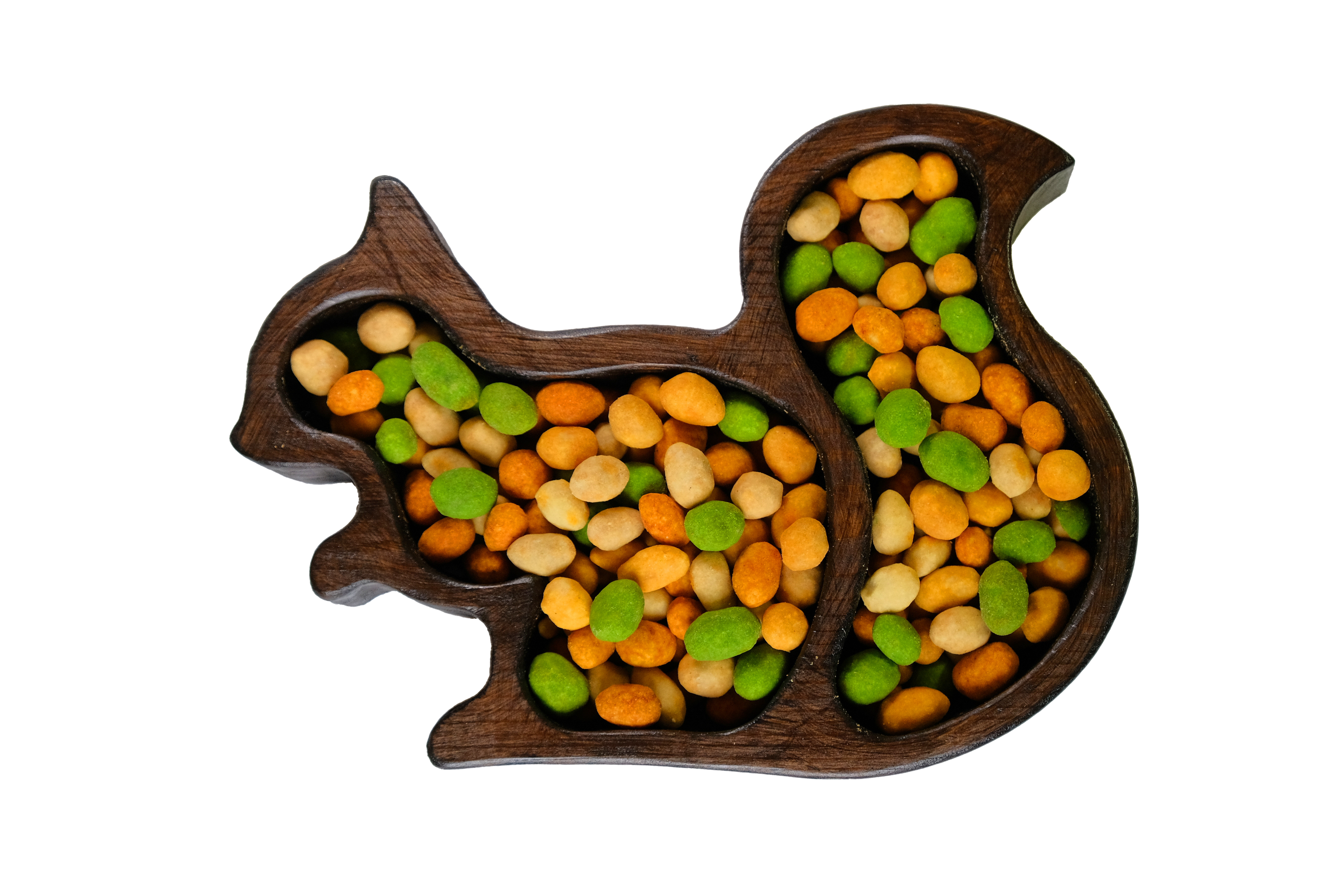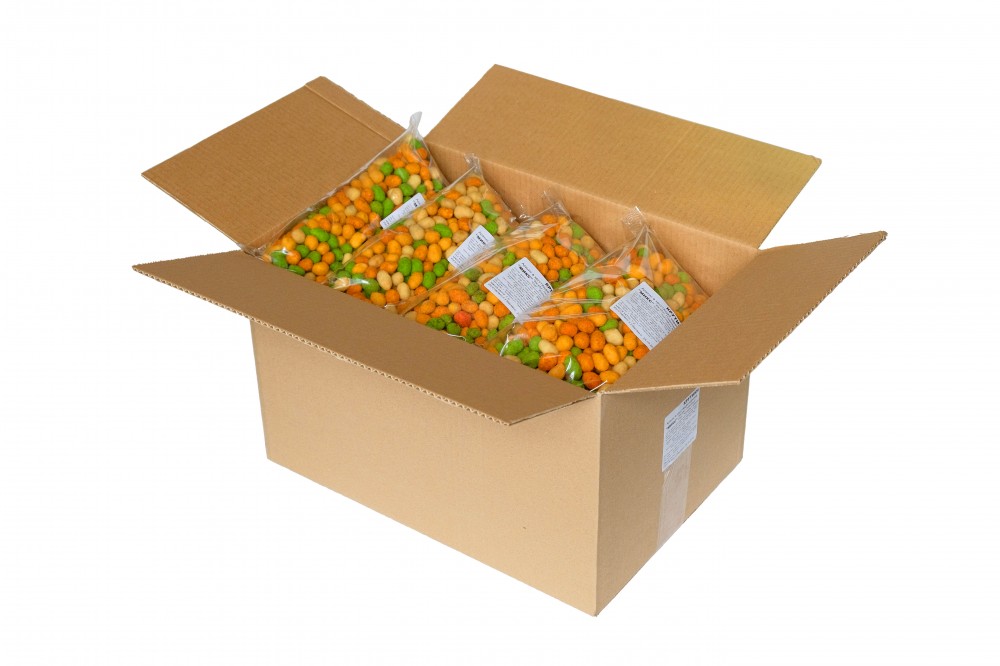 Состав: арахис, мука пшеничная в/с, крахмал кукурузный, стабилизатор Е 1422, жир кондитерский, вкусо-араматическая добавка "МИКС", соль, сахар.